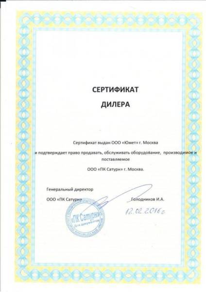 Сертификаты дилера